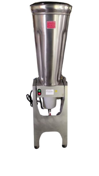 Licuadora basculante industrial de 25 litros, marca BIMG LQBI25110M604, fabricada en acero inoxidable. Motor 1.5 HP, 110V, 16.4A, ideal para uso gastronómico profesional.